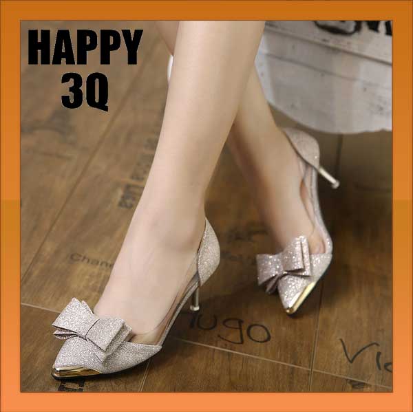 出自:線上購物分享 - 蝴蝶結金蔥閃亮淺口性感高跟細跟涼鞋高跟鞋-銀/黑/香檳34-40【AAA0852】