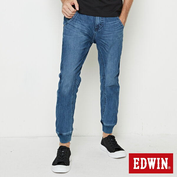 【新品送野餐墊↘】EDWIN JERSEYS迦績3D 束口AB牛仔褲-男款 中古藍【9/30前指定新品單筆滿3800就送EDWIN迷彩野餐墊↘隨貨寄出↘】